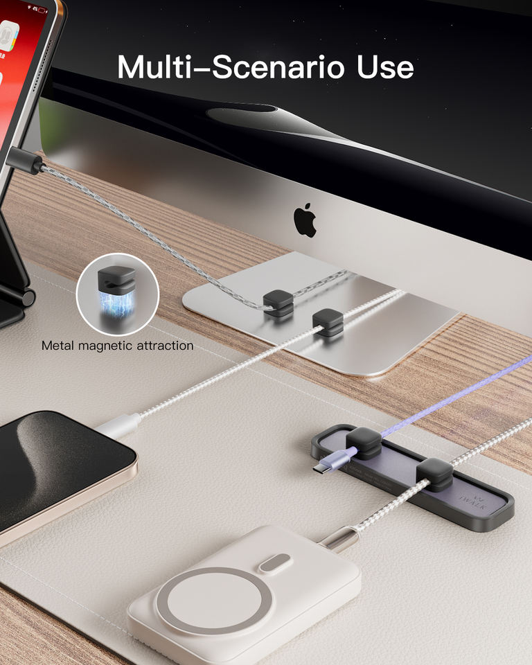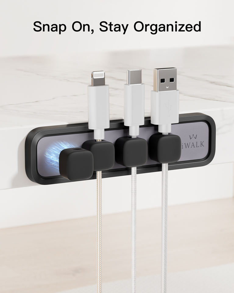 Magnetic Cable Clip Organizer Silicone Tidy Cord Management Straps Reusable Desktop Cable Organizer with Metal Holder