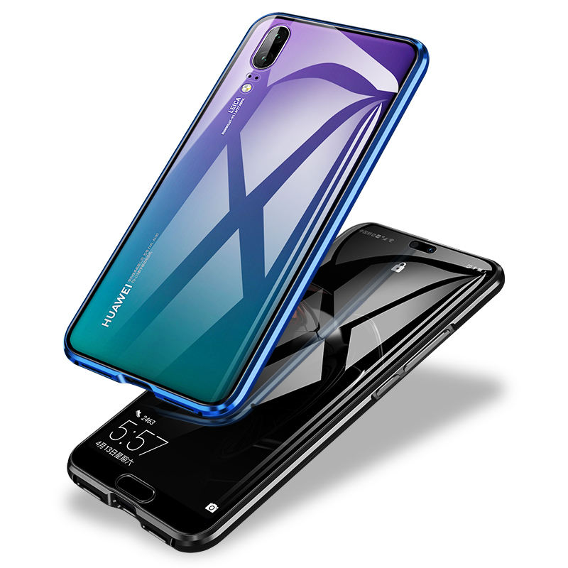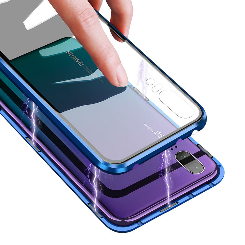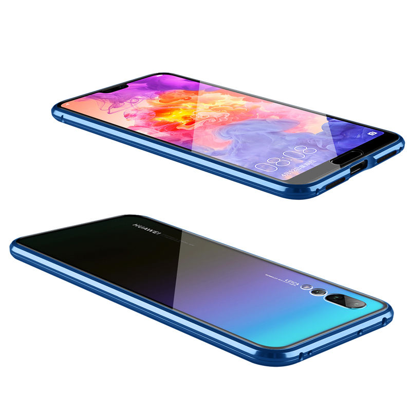 Magnetic Case 360 Front+Back Dual Side 9H Tempered Glass Screen Metal Bumper Cover for Huawei P20