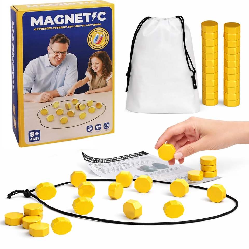 Gioco di Scacchi Magnetico con 20 Magneti e Corda, Gioco da Tavolo Educativo Portatile per Bambini e Adulti, Divertimento per Famiglia, Viaggi e Feste
