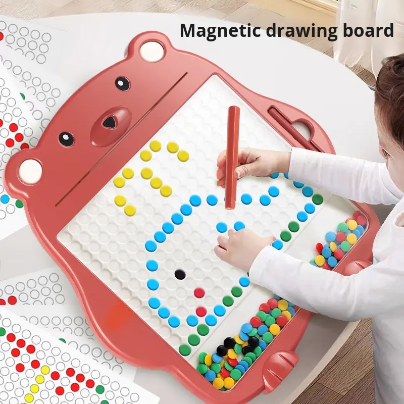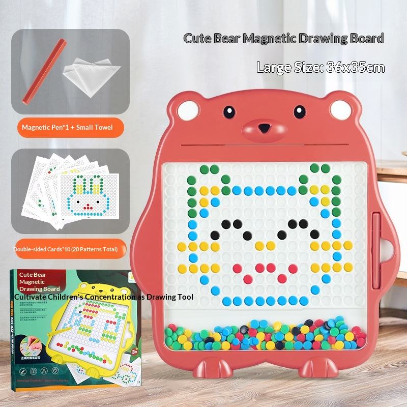 Lavagna Magnetica con Perline Colorate, Giocattolo per Bambini, Gioco Educativo di Disegno, Lavagna Magnetica con Orsetto Cartoon