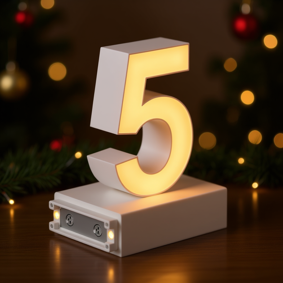 Luce LED Magnetica Numero 5 H3.7 Pollici 3000K Illuminazione Decorativa Alimentata a Batteria Base in Plastica