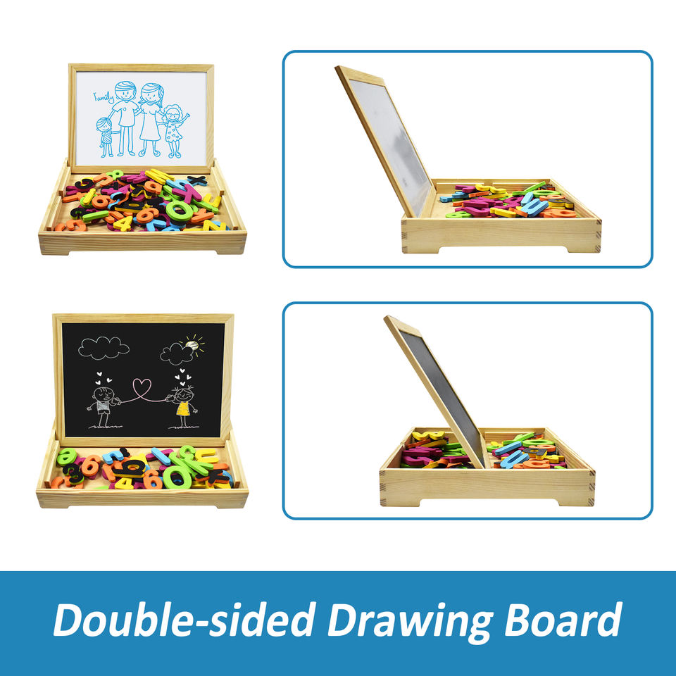 Set di apprendimento magnetico in scatola di legno lavagna e lavagna con lettere EVA numeri marcatori per bambini