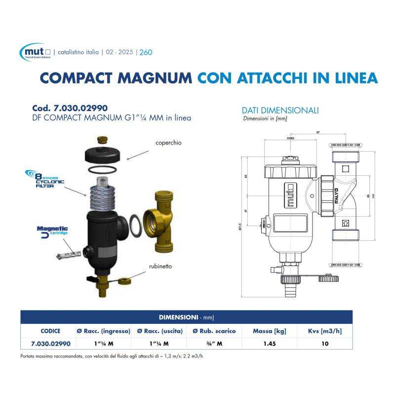 Depuratore Magnetico in Ottone per Fango per Sistemi HVAC Industriali Anticorrosione Modello Mut-7.030.02990 1 1/4''
