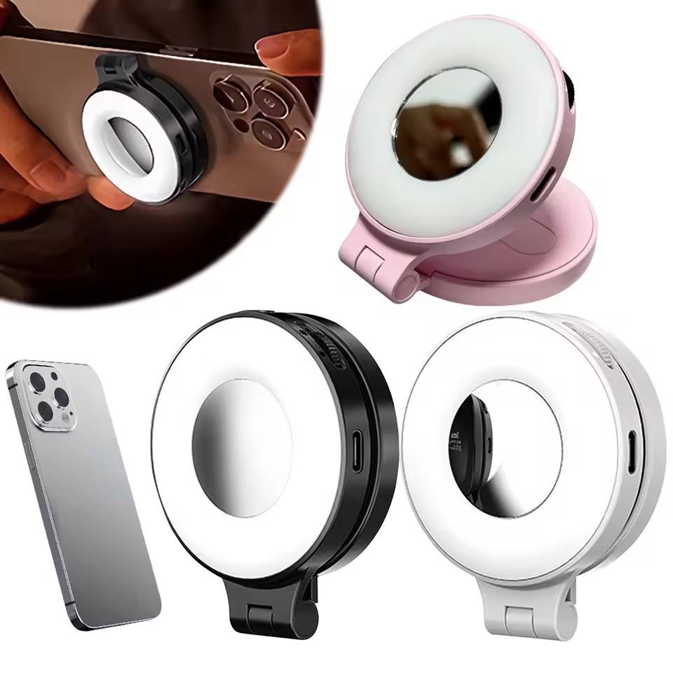 Luce Magnetica per Selfie con Anello Magnetico, Luce per Streaming Live, Mini Specchio Illuminato per Trucco, per Vlog e Streaming Live