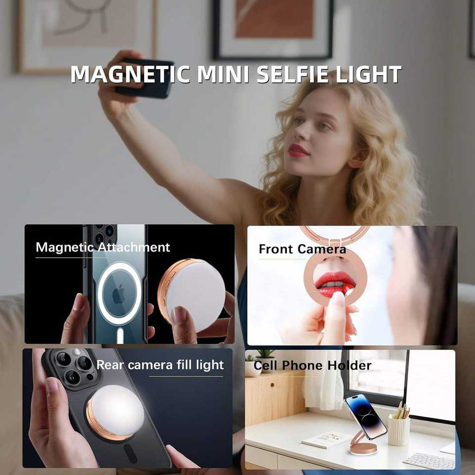 Luce per Selfie Magnetica con Specchio Convesso, Pieghevole ed Estendibile, Mini Luce Video in Materiale ABS Compatibile con Telefoni Magsafe