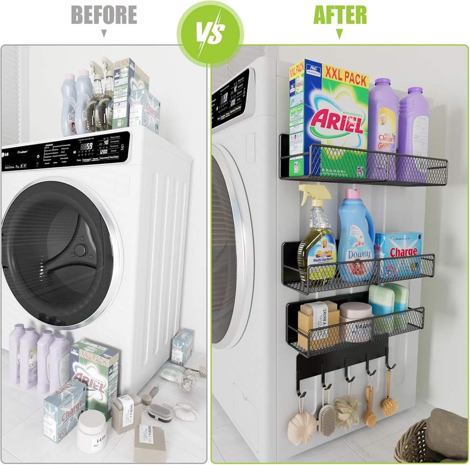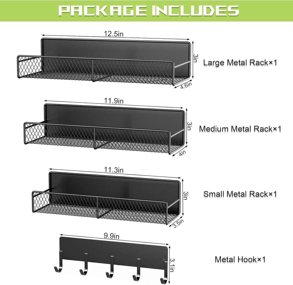 Cestini Magnetici Portaoggetti 4 Pezzi, Organizzatore in Metallo Nero con Ganci, Montaggio su Frigorifero e Lavatrice per Cucina