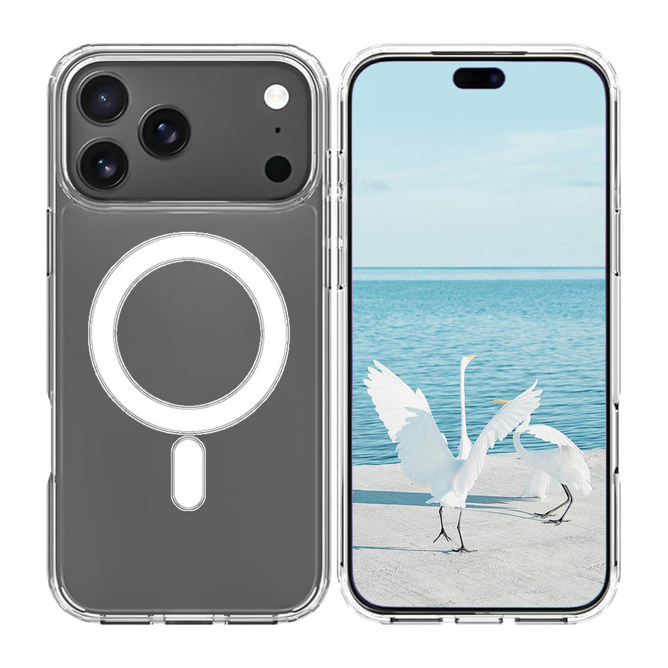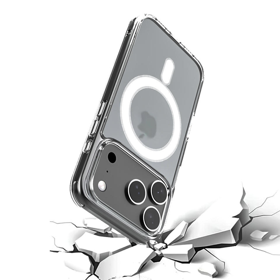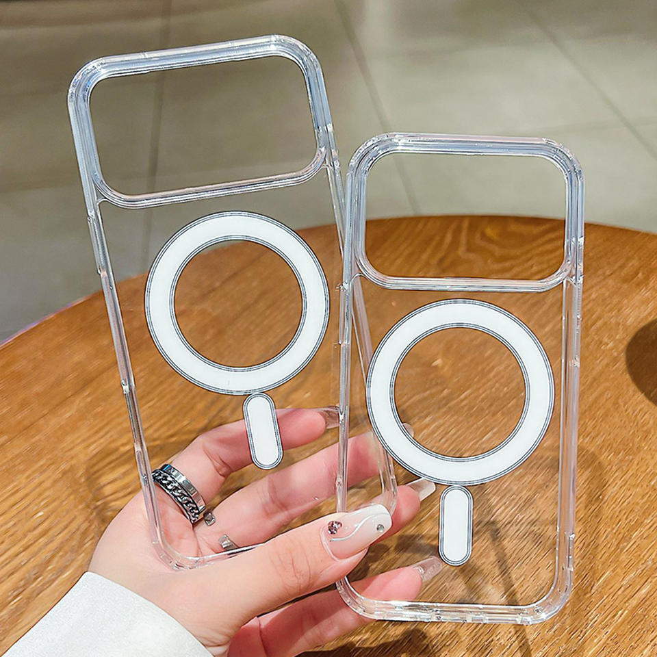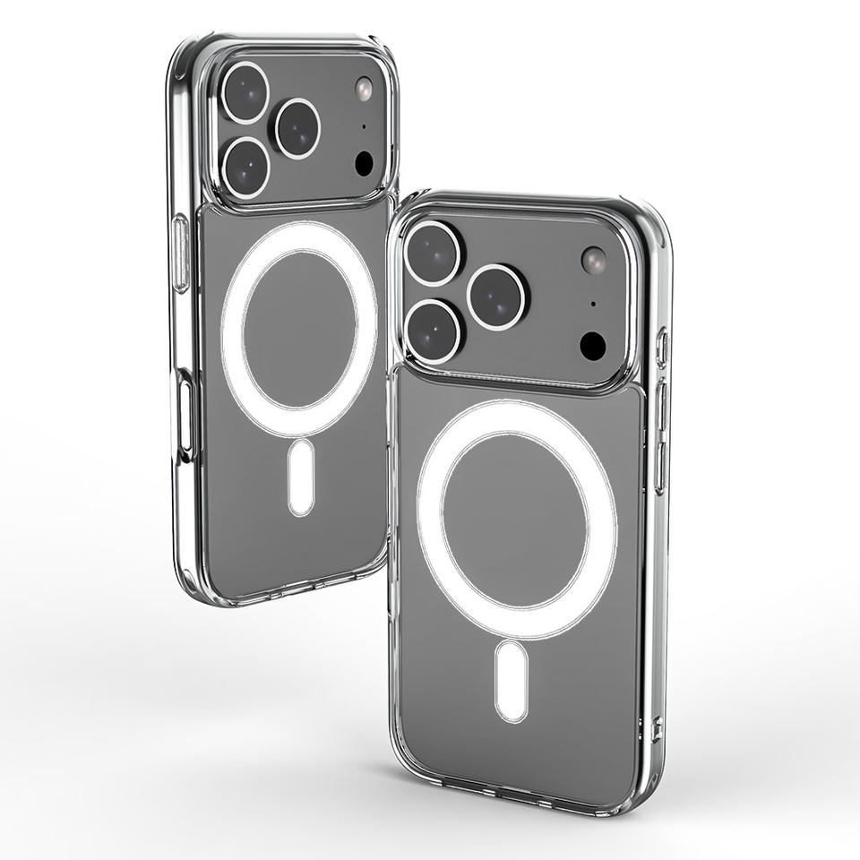 Custodia rigida trasparente in acrilico per iPhone 17 con ricarica wireless magnetica