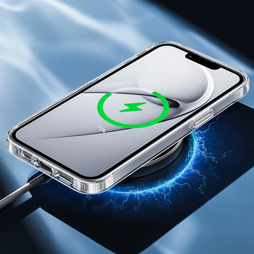 Nome del prodotto:Custodia rigida trasparente in PC con ricarica wireless magnetica per iPhone 16e