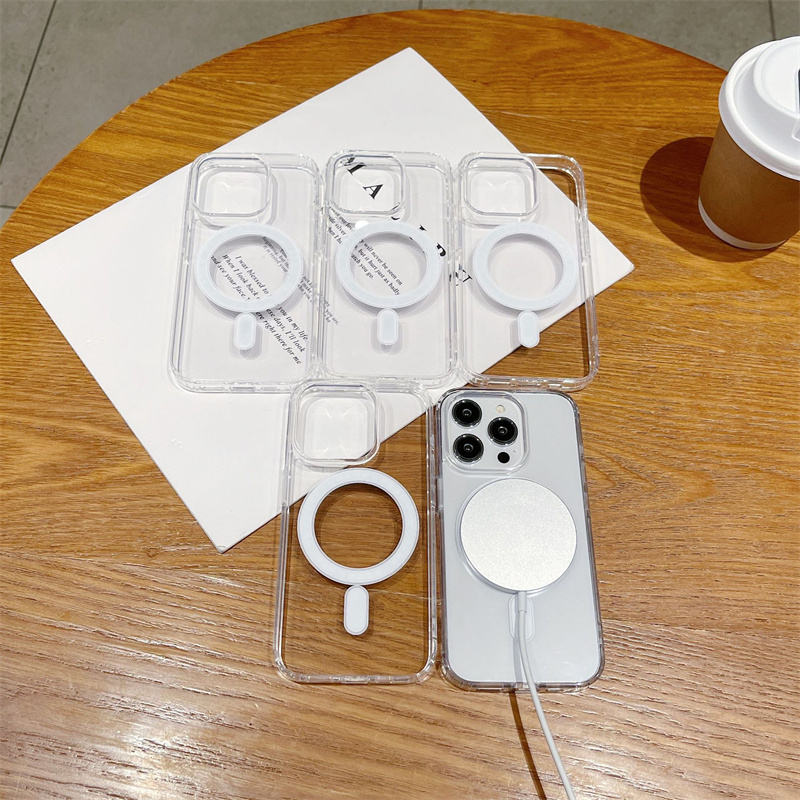 Custodia Trasparente per iPhone con Ricarica Wireless Magnetica per Modelli 17 Pro Max, 16, 15, 14, 13, 12, 11, Xr, Xs Max, 7, 8 Plus