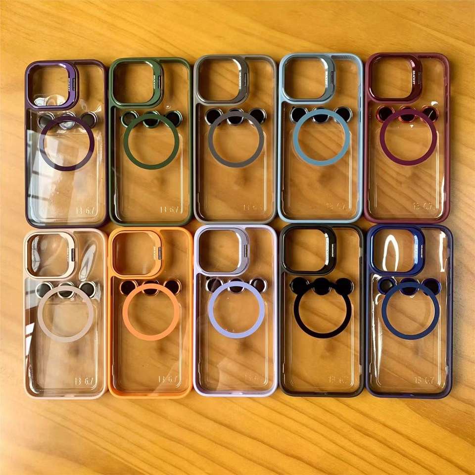 Custodia Magnetica con Supporto in Metallo per iPhone 17 16 15 14 Pro Max 11, Protezione Fotocamera in Vetro, Cover Trasparente