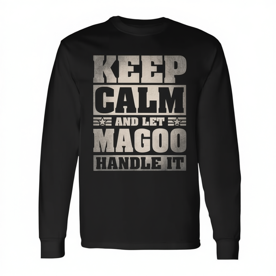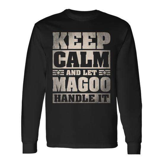 T-shirt a maniche lunghe personalizzata con nome Magoo, design personalizzato con cognome