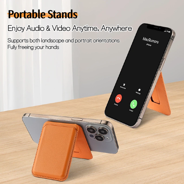 Portafoglio Magnetico Magsafe per iPhone Serie 15/14/13/12 con Blocco RFID in Materiale PU Porta Carte di Credito con Supporto