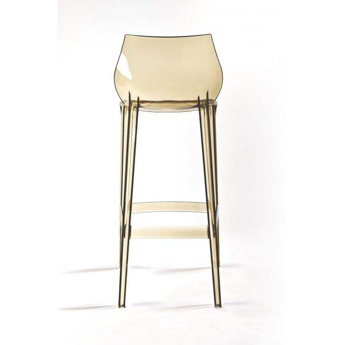 Sgabello da Bar Mahi Mahi in Policarbonato Trasparente Moderno Ambrato H-76 per Casa, Hotel, Feste - Modello MMAB000