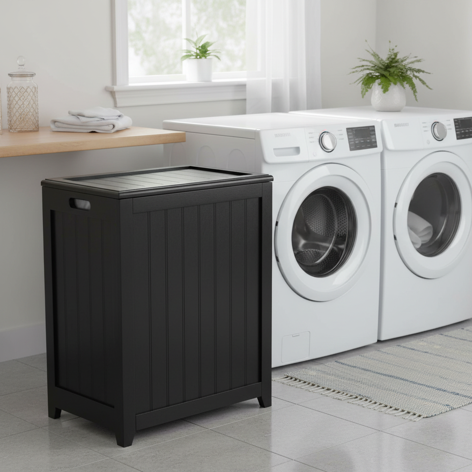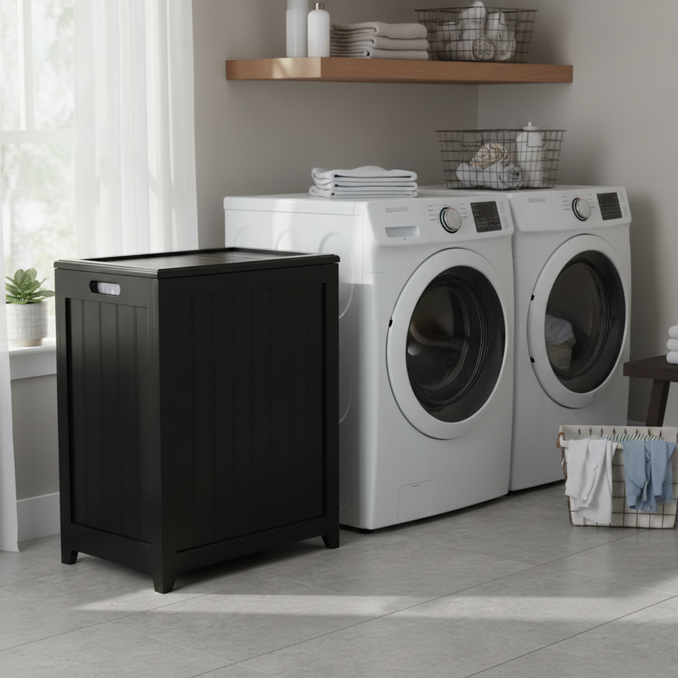 Cesto per biancheria in legno rettangolare rifinito in mogano con borsa interna RHP0109MH