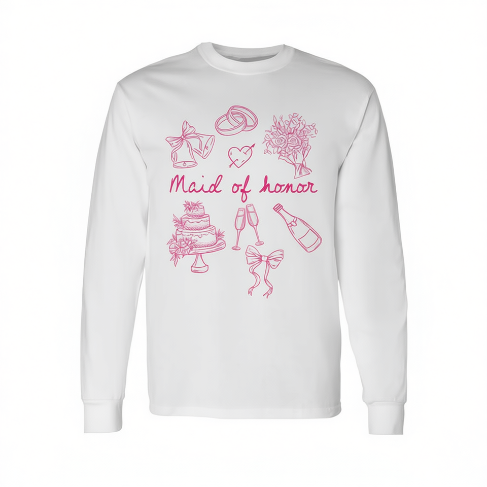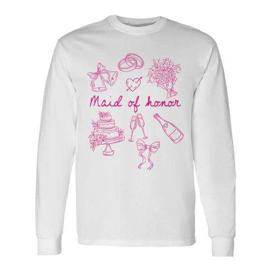 Maglietta a maniche lunghe per damigella d'onore, maglietta per addio al nubilato, matrimonio, festa nuziale