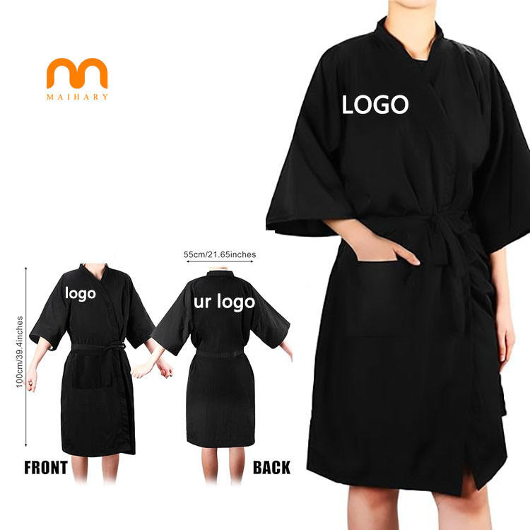 Maihary Cheaper Wholesale Waterproof Salon Robes Black Salon Smocks for Clients Polyester Hair Client Gown Cape for Men Women