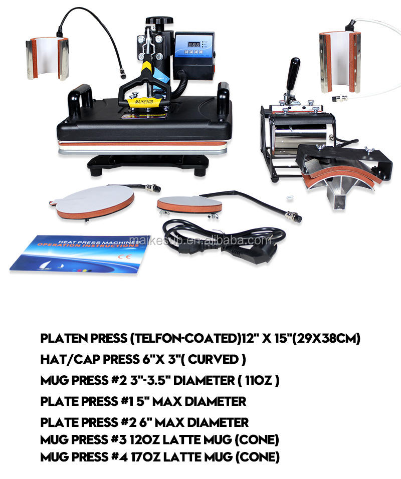 Maikesub 10 in 1 Sublimation Transfer Combo Heat Press Machine Cup Mug T-Shirt Printing Machine Sublimation Machine