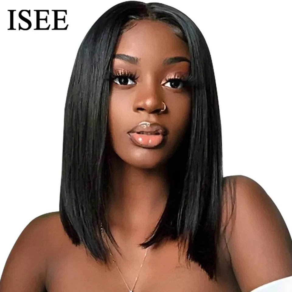 Capelli Umani Vergini 100% dalla Cina Continentale, Parrucca Bob Corto Liscio 13x4, Pizzo Trasparente con Nodi Decolorati, 12 Pollici, Permanente