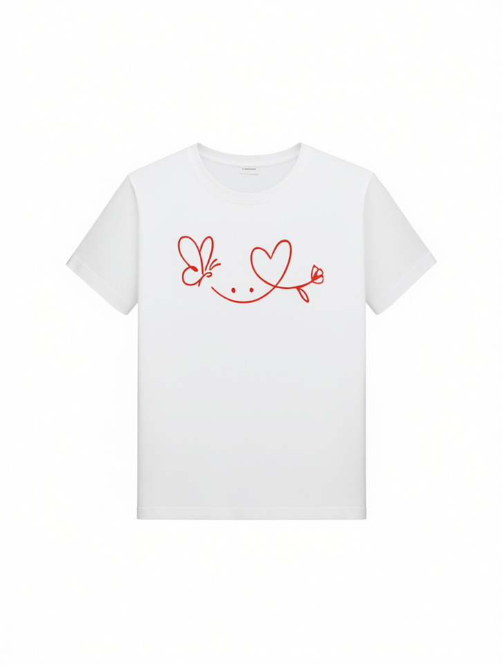 Maison Kitsun Women's Round Neck T-Shirt Short Sleeve Valentine's Day Love Heart Butterfly Print Romantic Style 100% Cotton