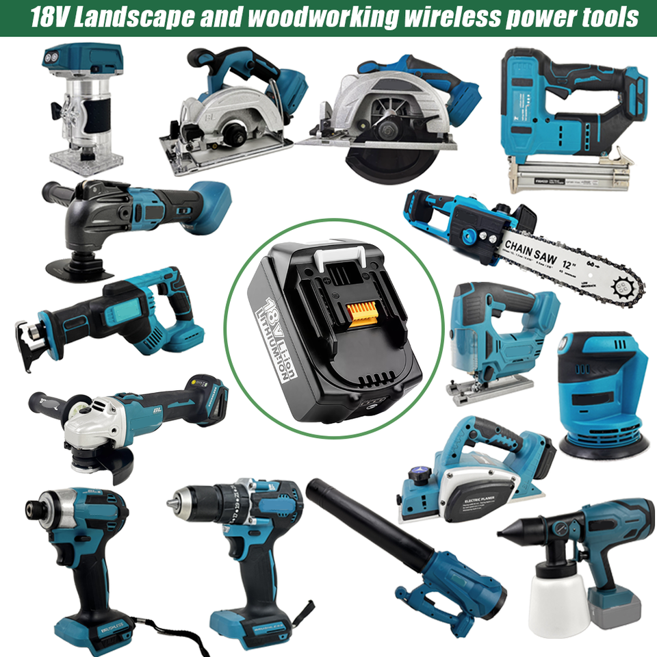 Adattatori, Batteria, Smerigliatrice di angolo, Caricabatterie, Circolare ha veduto, Combinazione, Trapano elettrico, Avvitatore elettrico, Sega elettrica, Electric Piallatrice, Martello elettrico, Trimmer elettrico, Chiave elettrica, Macinino, Impact driver, Illuminazione A LED, Chiave pneumatica, La maschera ha veduto, Livellamento, Nail Gun, Chiavi a cricchetto, CacciaviteUtensili inclusi