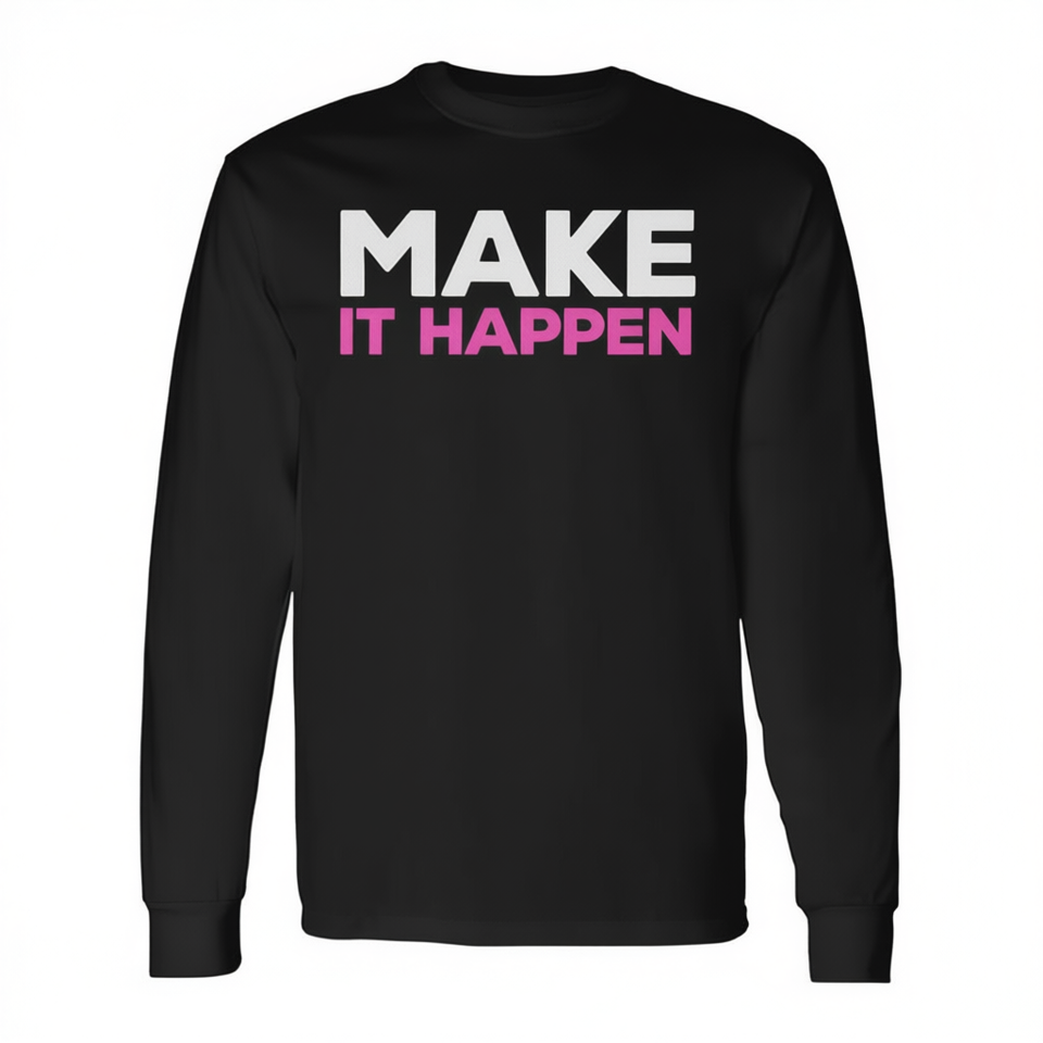 T-shirt a maniche lunghe Make IT Happen, design motivazionale nero, taglia unisex per adulti