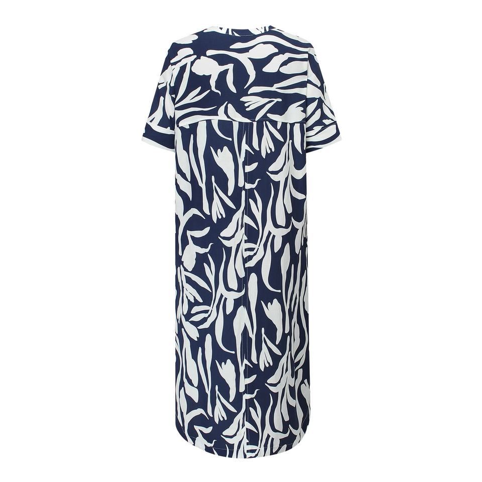 Rendere i miei vestiti personalizzati manica corta scollo a V estate grafica bianca blu su tutta la stampa a blocchi abito Midi tunica delle donne