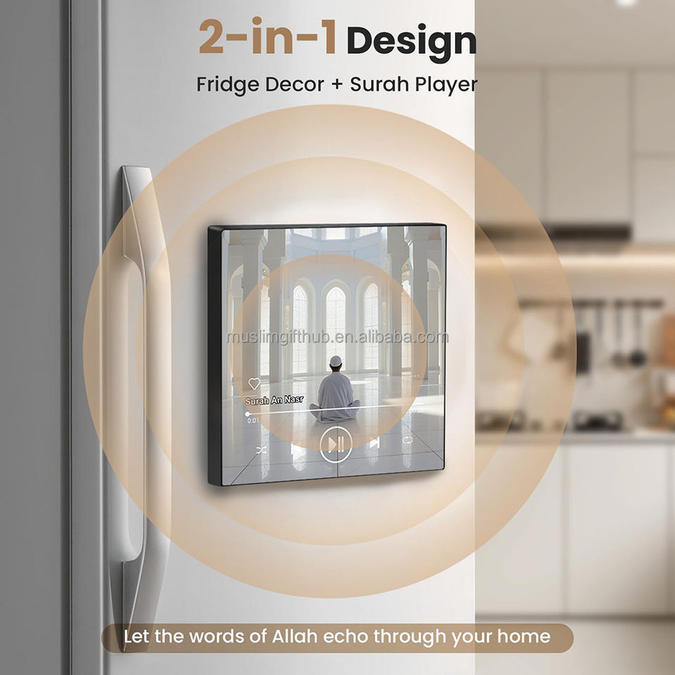 Magnete per Frigorifero della Kaaba di Mecca con Surah Al Kahf, Altoparlante Magnetico Portatile per il Corano Completo con Telecomando