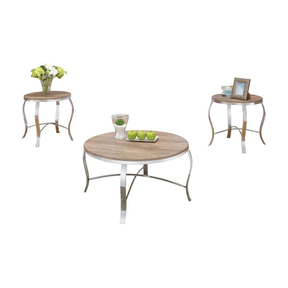 Malai Weathered Light Oak & Chrome Finish 3-Piece Pack Coffee & End Table Set