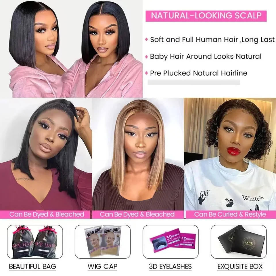 Malaysian Straight Short Bob 13x4 Lace Frontal Wig