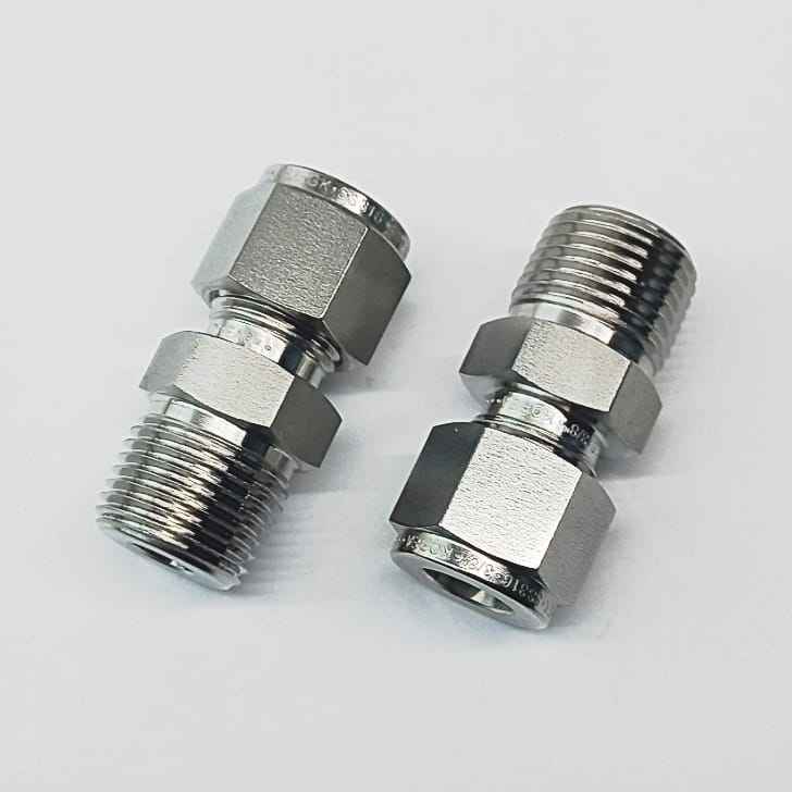 Nome del prodotto:Raccordo doppio puntale a compressione SS316-CON maschio. 3/8 "OD X 3/8" NPT