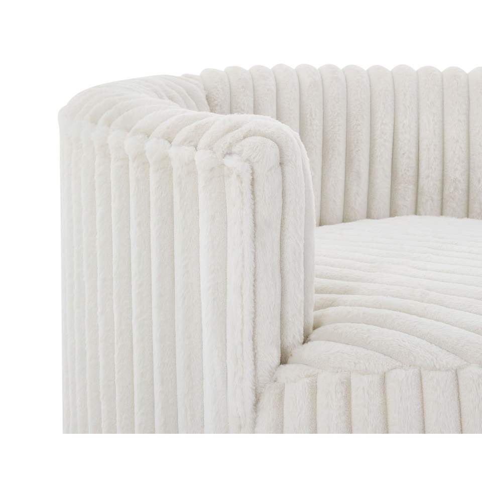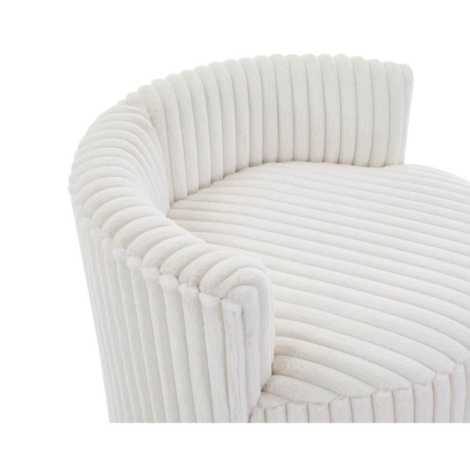 Poltrona Barrel Off-White Malna in Velluto a Coste Larghe Imbottita con Ruote per Soggiorno