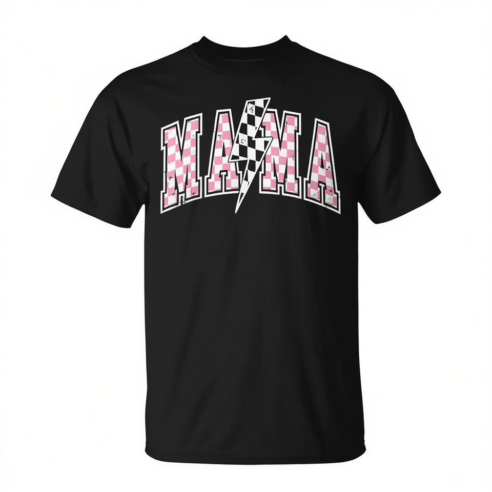 Mama Lightning Bolt Checkered Mom Women T-Shirt