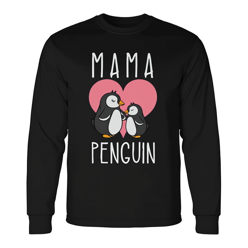 T-shirt a maniche lunghe Mama Penguin, regalo coordinato per la festa della mamma