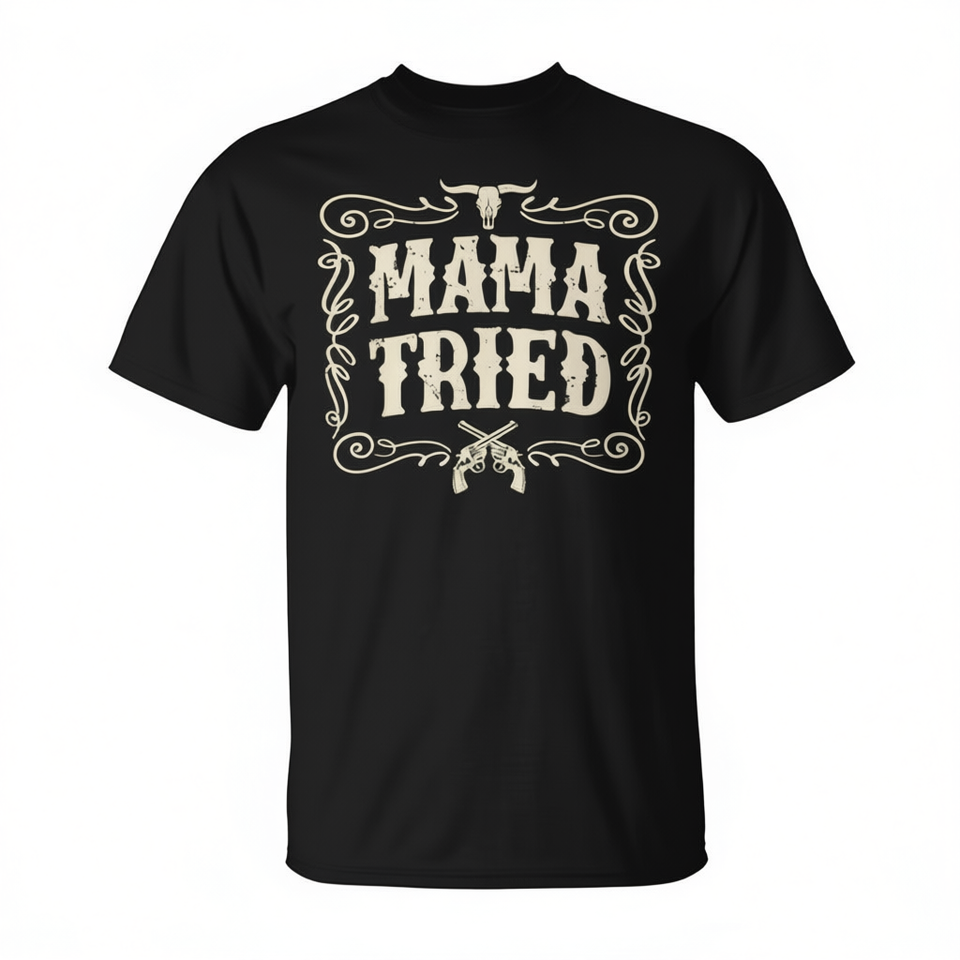 T-shirt Mama Tried Western per la festa della mamma, regalo per la festa della mamma, cotone nero, unisex, taglia adulta SMLXLXXL