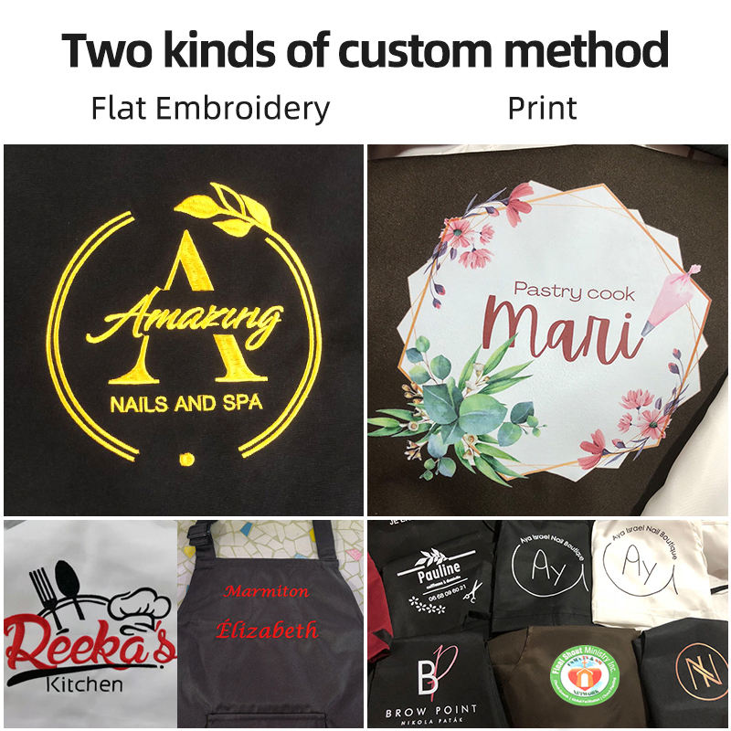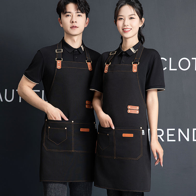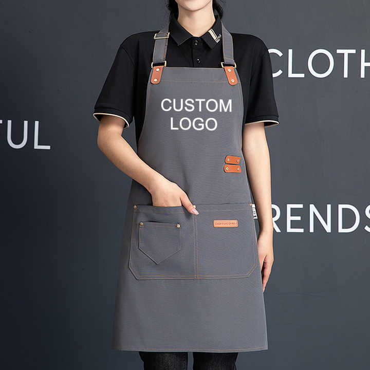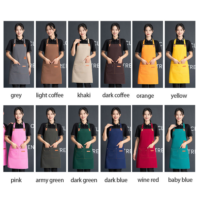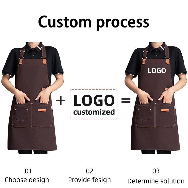 Grembiule da uomo in tessuto non tessuto, regolabile, per barbiere, barista, con logo, in cotone color kaki, per cucina