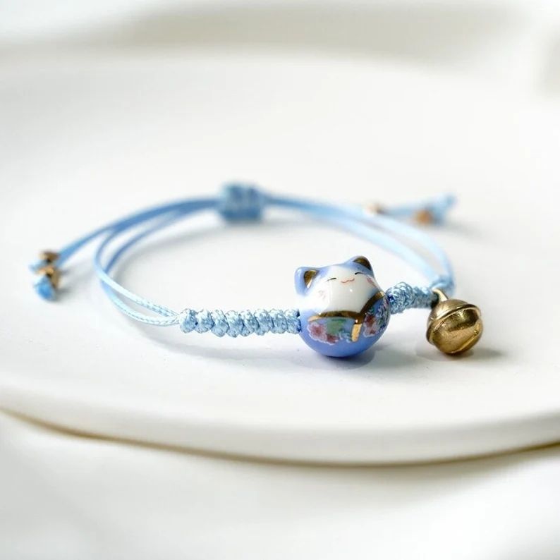 Parole chiave:Maneki Neko Macrame Ceramica Sakura Gatto Braccialetto di Corda con Campana