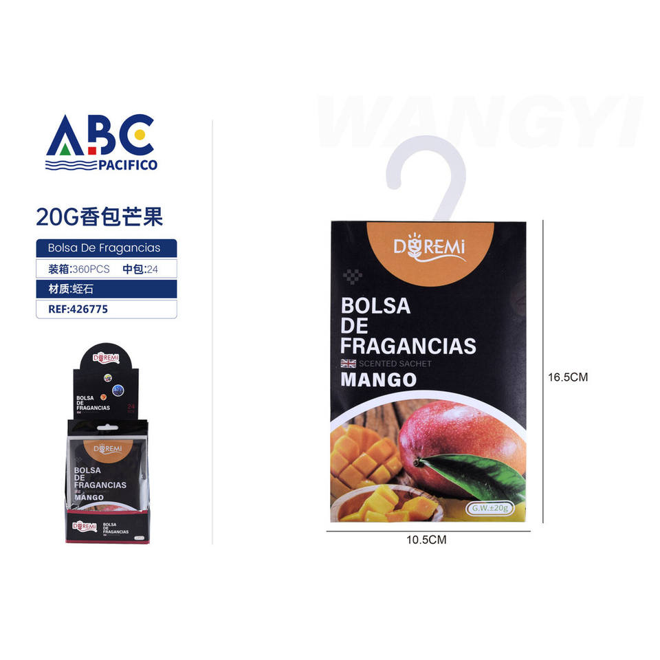 Mango Scented Paper and Fabric Fragrance Bag Hanging Air Freshener with Plant Pattern for Bedroom Rope Format