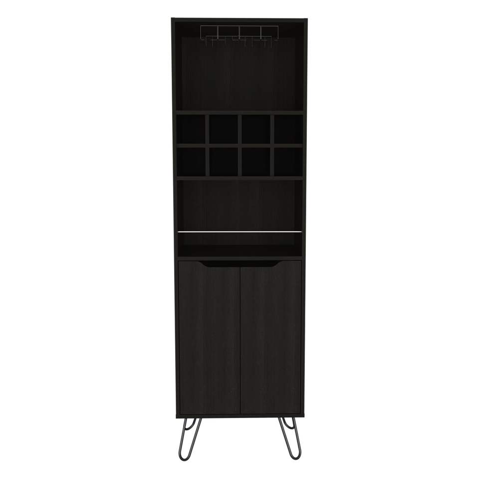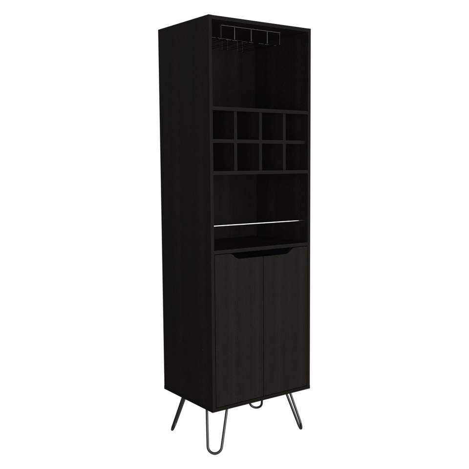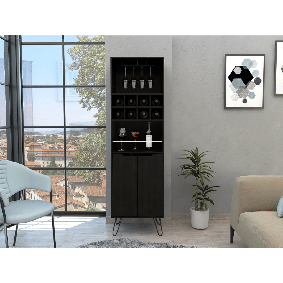 Mobile Bar Alto Manhattan con Otto Portabottiglie Integrati e Due Armadietti Monoporta in Nero
