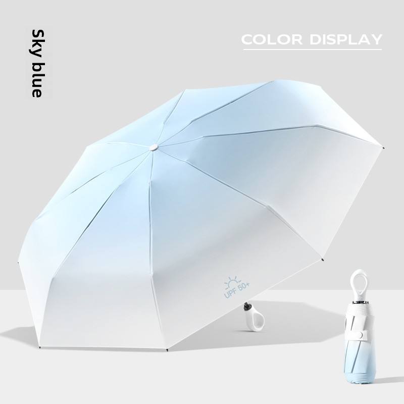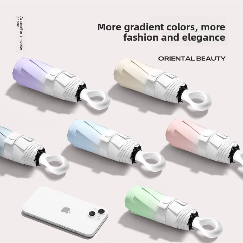 Ombrello Manuale a 5 Sezioni con Gradiente di Colore a Capsula | 8 stecche antivento, rivestimento nero con protezione UV | Doppio Uso Sole e Pioggia