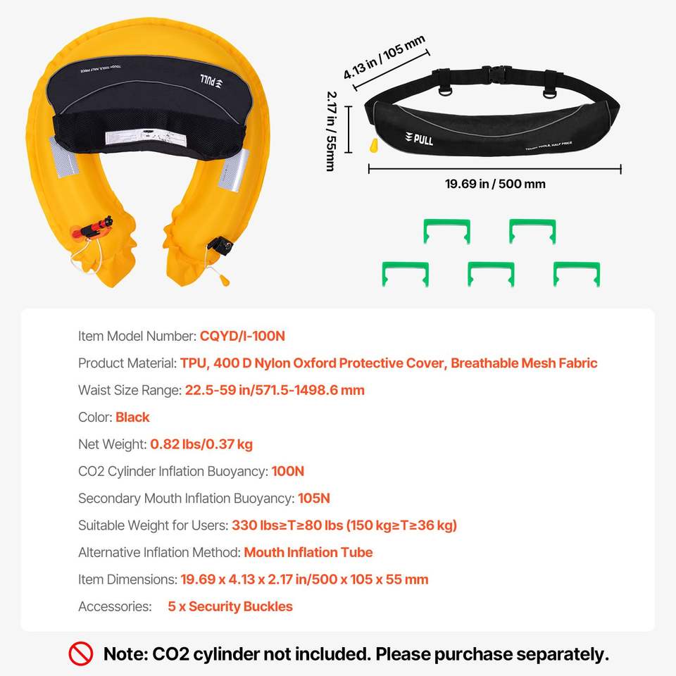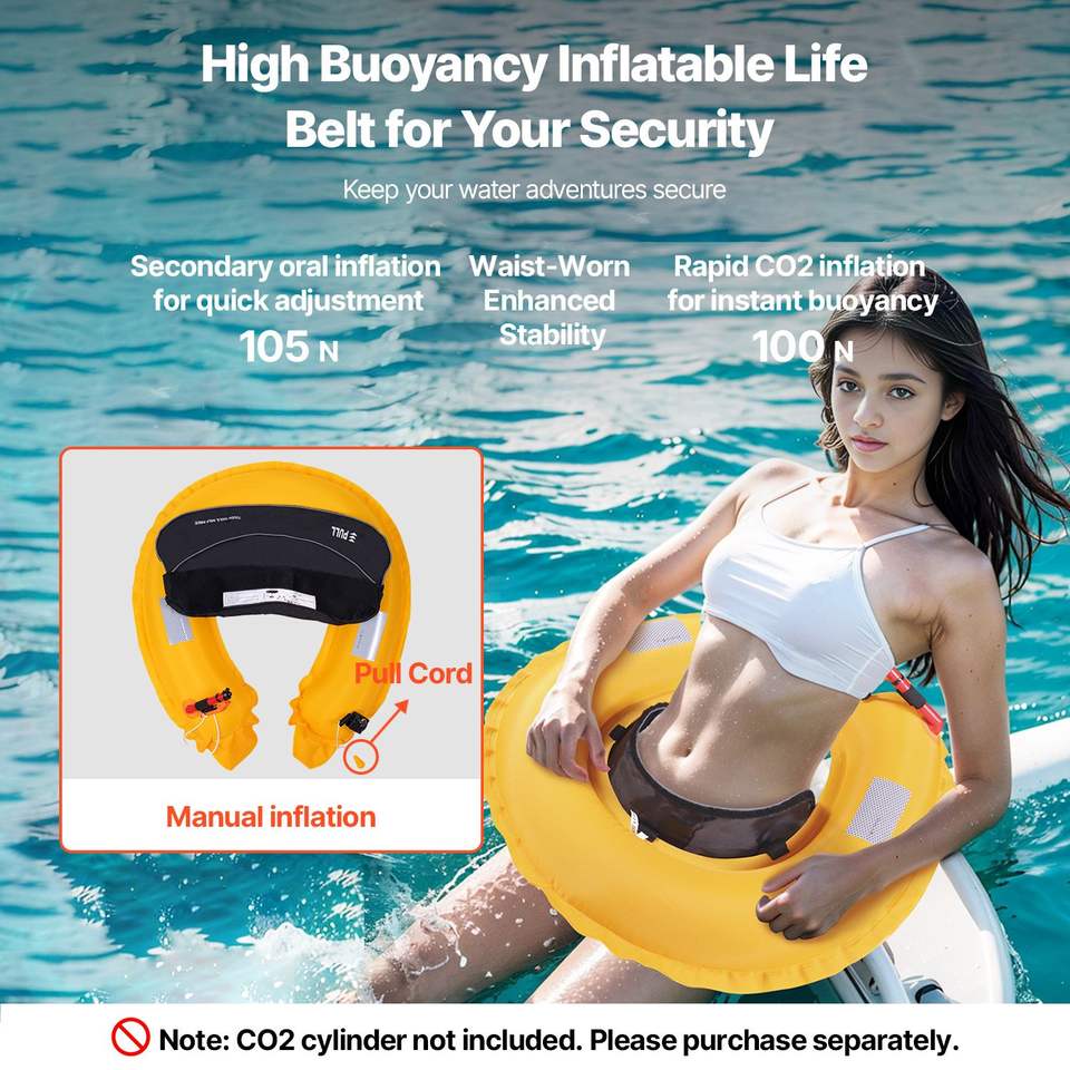 Giubbotto di Salvataggio Gonfiabile Manuale per Adulti, Galleggiabilità 105N, per Peso Superiore a 80 Libbre, Vita Regolabile fino a 59 Pollici
