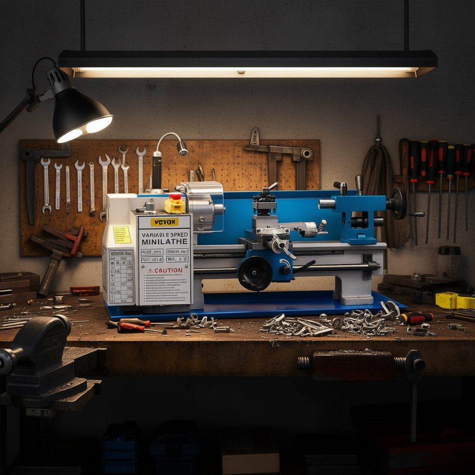 Tornio Manuale in Metallo 7x12 Pollici 550W a Velocità Variabile 50-2500 RPM, Mini Tornio da Banco per Lavorazioni Leggere