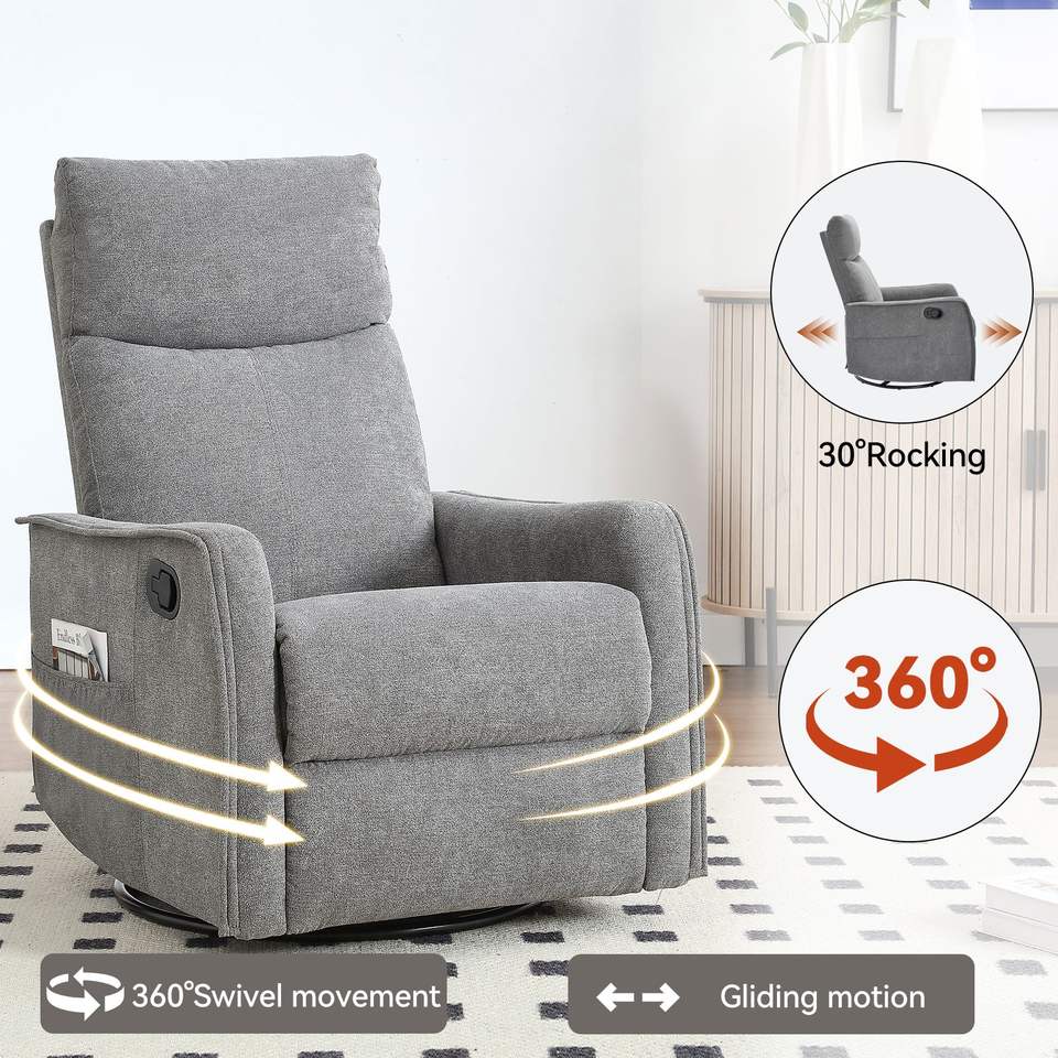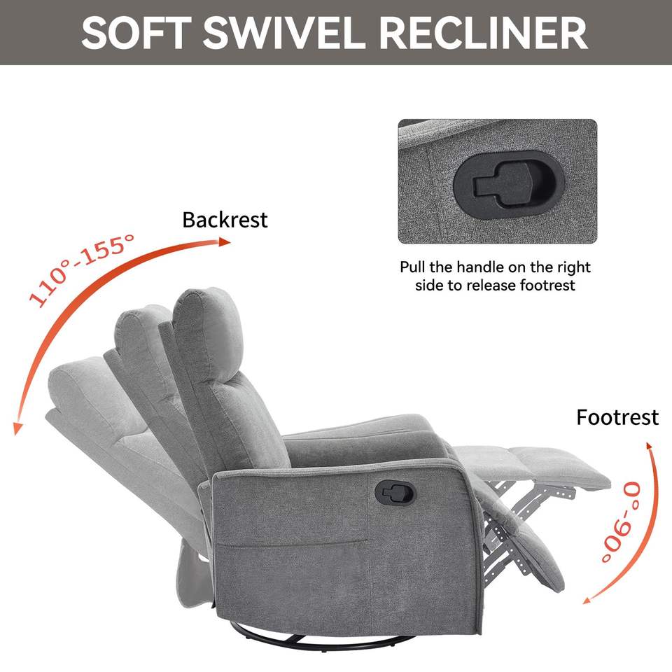 Poltrona Reclinabile Manuale con Funzione Massaggio e Riscaldamento, Girevole, in Tessuto Grigio per Soggiorno