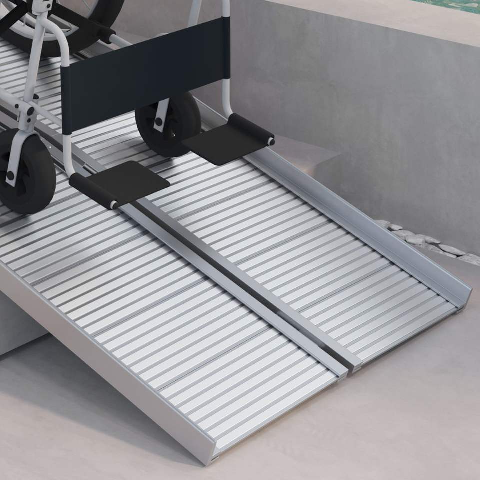 Rampa Manuale per Sedia a Rotelle 5ft in Alluminio Testurizzato per Sicurezza, Pieghevole, Argento, per Gradini e Porte