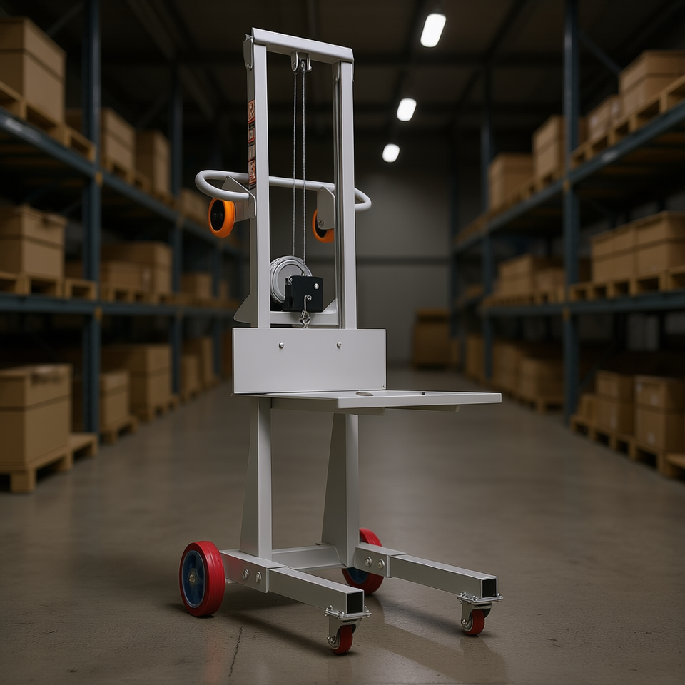 Sollevatore Manuale a Verricello con Capacità di 400 Libbre, Altezza Massima 51,1 Pollici, Ruote Regolabili, per Uso in Magazzino