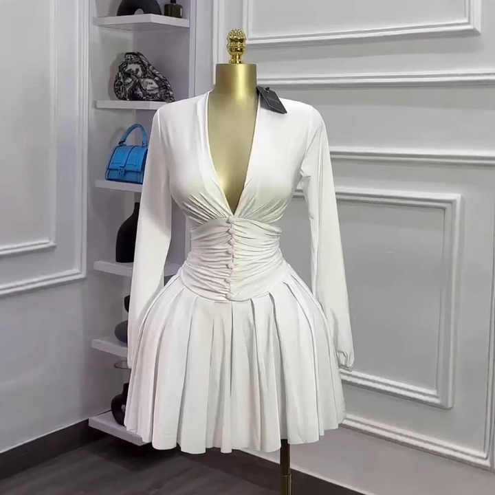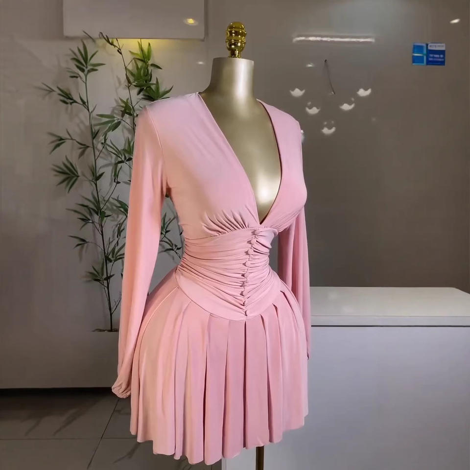 Manifattura stile personalizzato o Logo ODM aderente da donna Streetwear da discoteca manica lunga eleganti Mini abiti pieghettati Sexy