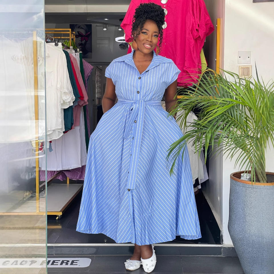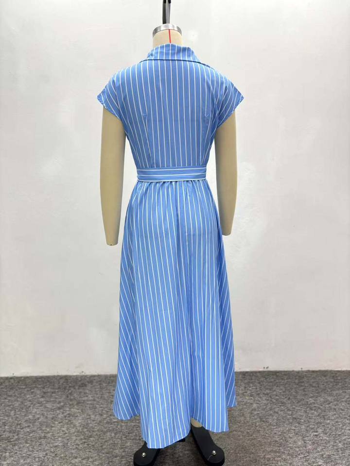 Manufactory Custom Style or Logo ODM Fashion Single Breasted Women Stripped Printed Maxi Dresses Elegant A-line Long Dress