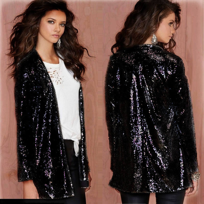 Giacche e Cardigan da Donna Personalizzabili con Logo o Stile ODM, Moda Autunnale, Blazer Dorato con Paillettes, Maniche Lunghe