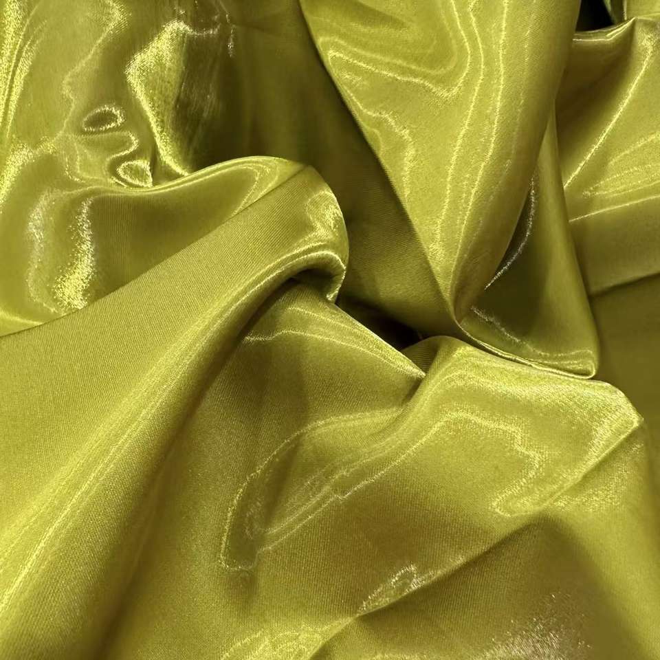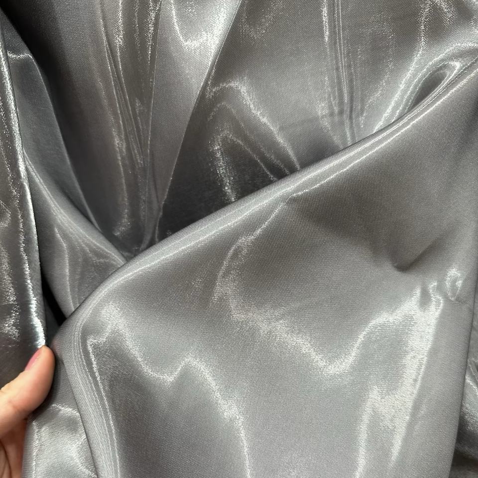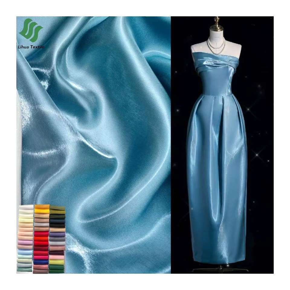 Fabbricazione 155 Gsm spessa antirughe poliestere Glitter liquido satinato tessuti Organza per abiti da sera