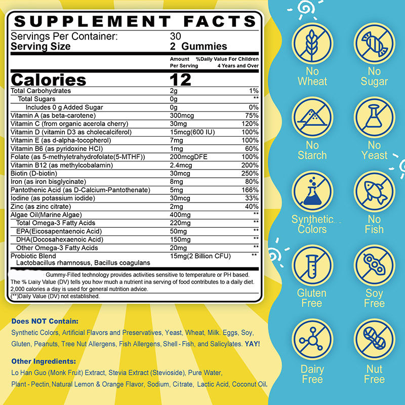 Manufacture Vitamin C B12 Gummies Daily Vitamin Supplement for Kids Child Immune System Natural Flavor Gummy with Multivitamin