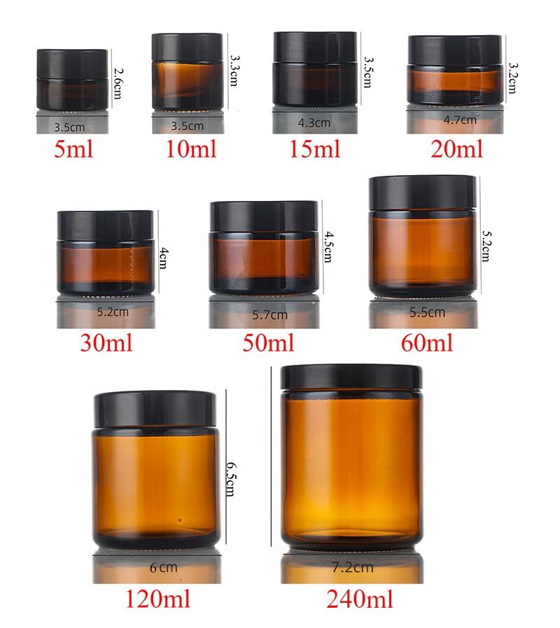 Nome del prodotto:Produciamo barattolo cosmetico in vetro ambrato da 4 oz (120 ml) con coperchio nero vuoto